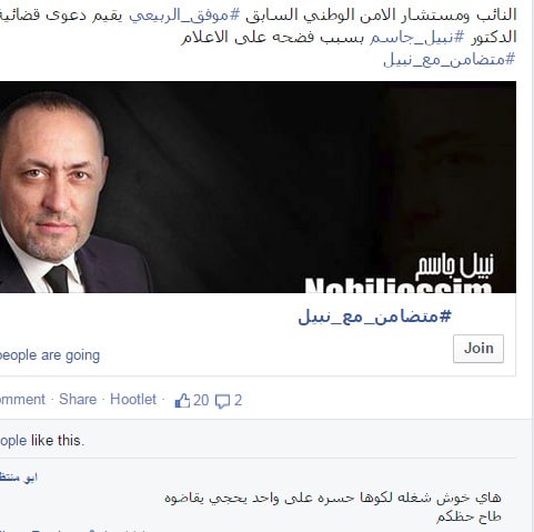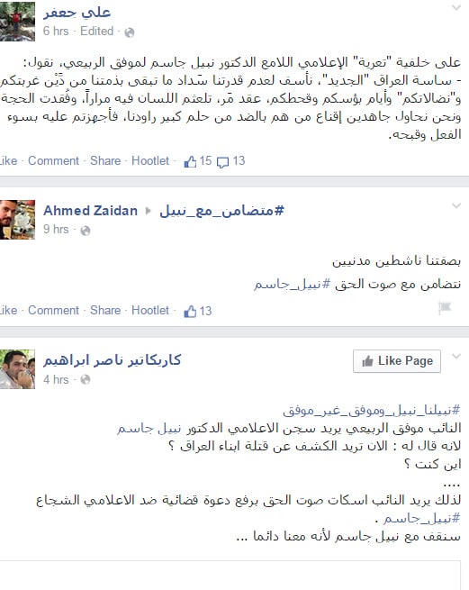 وكلف الربيعي يوم امس الجمعة محاميا للبدء باجراءات الدعوى القضائية رافضا اي وساطة اعلامية مع نبيل جاسم.