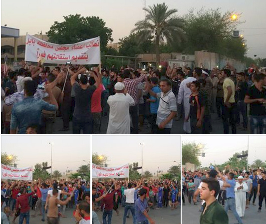 وقال شهود عيان إن مئات المواطنين في بابل تظاهروا مجددا، مساء اليوم، أمام مبنى محافظة بابل، وقاموا بقطع الطريق المؤدي إلى المبنى.