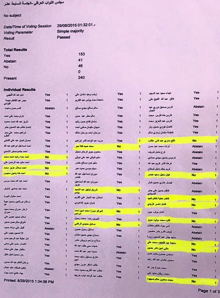 الاسماء التي أمامها Yes معناها نعم للوزير وعددهم ١٥٣