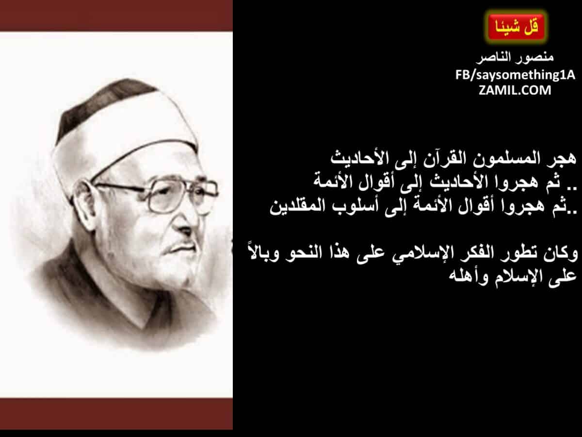 هجر المسلمون القرآن إلى الأحاديث، ثم هجروها لأقوال الأئمة، ثم هجروا أقوالهم إلى أسلوب المقلدين.. فكان تطور فكرنا الإسلامي هكذا وبالاً على الإسلام وأهله!