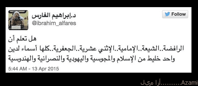 لا يتعلق الامر هنا بالطائفية، بل بالعنصرية والتفكير العنصري الذي يحكم على شعوب وطوائف بأكملها بجرة قلم واحدة، وكانهم خرز مسبحة لا تفرق إحداها عن الاخرى بأي شيء>