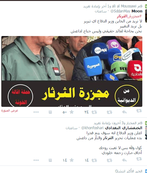 أزاميل/ متابعة: أثارت المجزرة التي حصلت بحق اكثر من 140 جنديا وضابطا كبيرا في ناظم الثرثار شمال الفلوجة غضبا عارما بين العراقيين وانتشرت عبارات الغضب مما جرى فضلا عن توجيه الاتهامات لعدد كبير من المسؤولين صغارا وكبارا.