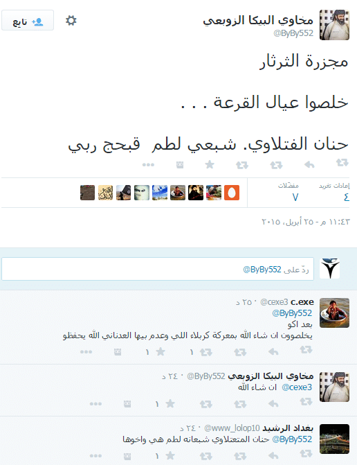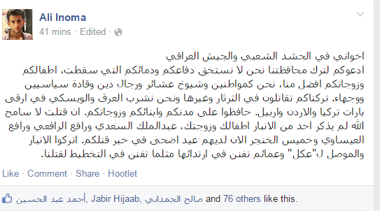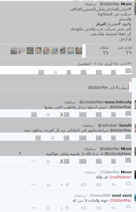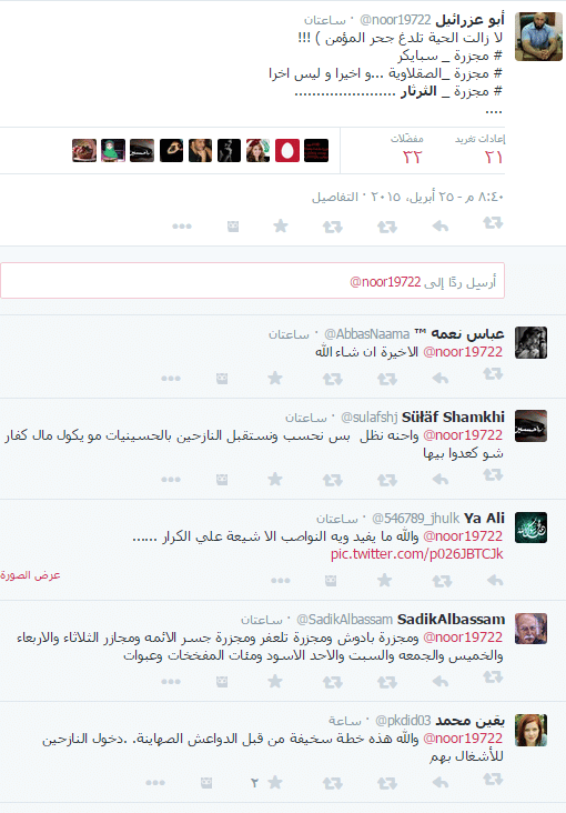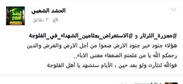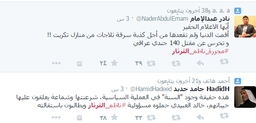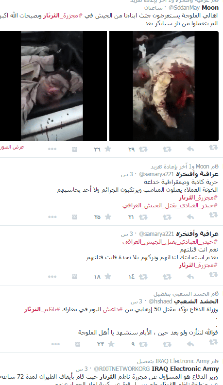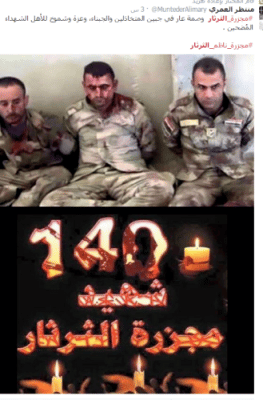 وفي الوقت نفسه عبر عدد من “العراقيين”، عن سرورهم بحصزل هذه المذبحة وراحوا يتحدثون عن فخرهم بما جرى واعتزازهم، في سلوك يعبر عن كراهية وضغينة واضحة، لشريحة كبيرة من ابناء وطنهم، بحجج طالما رددها السياسيون باسم هذه الطائفة او تلك..وادى إلى إحداث ضرخ كبير بين العراقيين لم يعد بالإمكان تجاهله او التهوين من شأنه.
