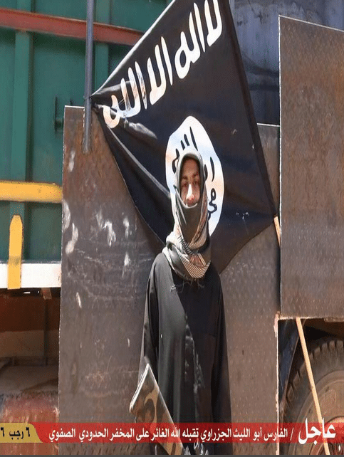 أزاميل/ متابعة: أكد تنظيم الدولة الاسلامية، السبت، في خبر بثته مواقع تابعة له عن قيام الانتحاري السعودي ابو الليث الجزراوي بالهجوم بسيارة مفخخة على مقر الفوج الثالث اللواء الخامس بمخفر حدودي عند الحدود السعودية.