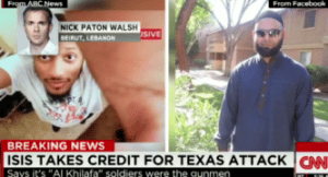 ازاميل/ متابعة: تبنى تنظيم داعش عبر إذاعته الهجوم الذي استهدف الأحد مركزاً للمعارض كانت تجري فيه مسابقة لرسوم كاريكاتورية عن النبي محمد في مدينة غارلاند في ولاية تكساس الأميركية.